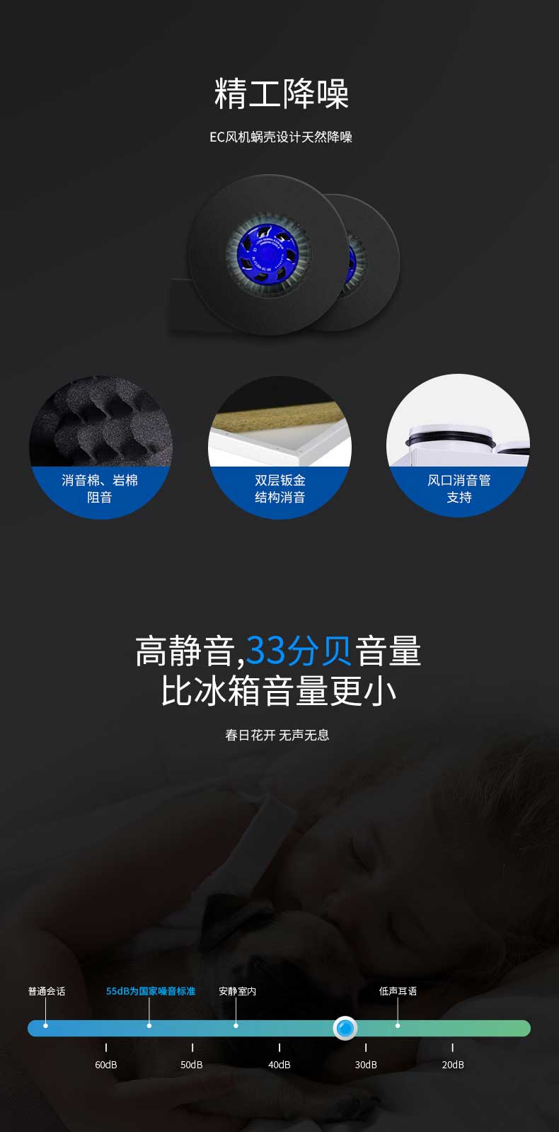 ●精工降噪,33分貝,比冰箱更靜音